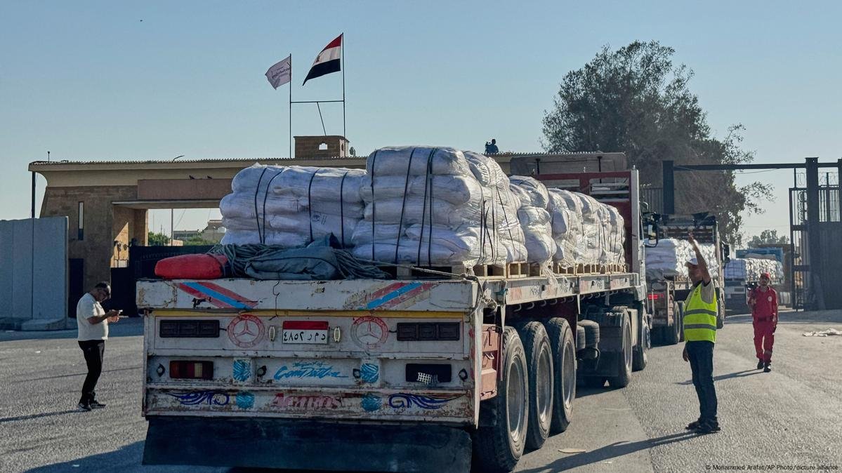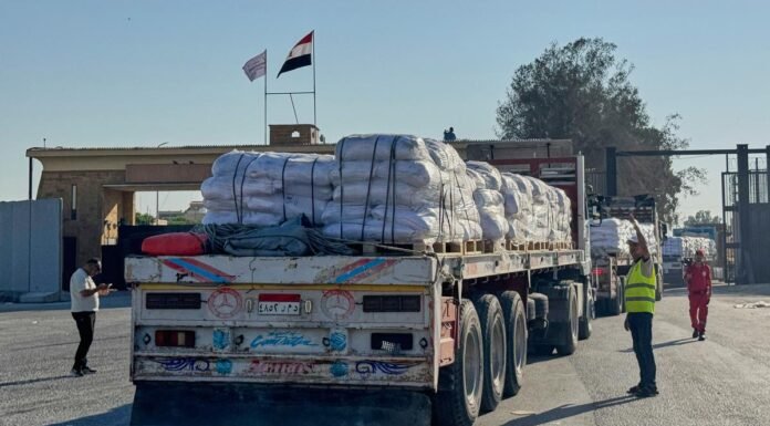 Humanitarian aid convoys begin to arrive in Gaza from Egypt