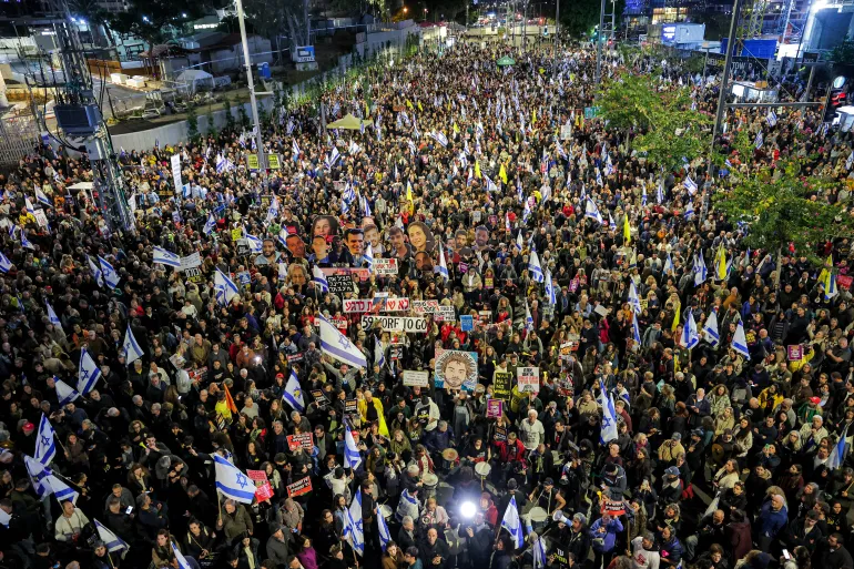 Thousands of Israelis poured into streets against war in Gaza