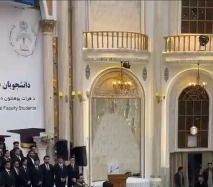KABUL: Armed enforcers of the Taliban’s Ministry for the Promotion of Virtue and Prevention of Vice disrupted a graduation ceremony for medical students at Herat University, ordering the graduates to remove their neckties. According to sources, the students were forced to take off their ties in front of approximately 2,000 attendees at the event. Some participants described the enforcers’ behavior as “humiliating” and “against social norms” during interviews with the media. The incident occurred on Friday night, in a hall in Herat, where around 50 graduates from the Faculty of Medicine were celebrating their accomplishment. Videos shared on social media show armed Taliban officials interrupting the program’s host, disrupting the ceremony, removing some students from the stage, and coercing them to remove their ties. This comes amid increasing restrictions imposed by the Taliban in Herat in recent days, including prohibiting women from entering certain places unless dressed according to the group’s standards, shooting at gatherings of young people (resulting in one death), and barring families from certain recreational areas. The events are part of the intensifying pressure from the Taliban concerning dress codes and the social presence of Herat’s residents.