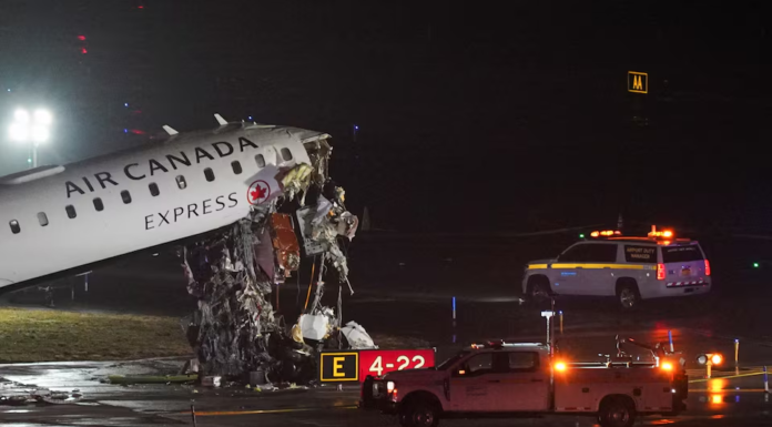 In a serious incident at LaGuardia Airport, an Air Canada Express aircraft collided with a fire truck while landing, causing severe damage to the nose of the plane. The aircraft, operating as Flight 8646, was traveling from Montreal to New York. According to reports, four people — including the pilot, co-pilot, and two firefighters — were injured, and two of them suffered bone fractures. The airport was temporarily closed for investigation, and flights were either canceled or diverted to other airports. Images released from the scene show that the front section of the aircraft was heavily damaged, and the incident caused significant damage. Authorities have not yet announced the exact number of any additional casualties or injuries.
