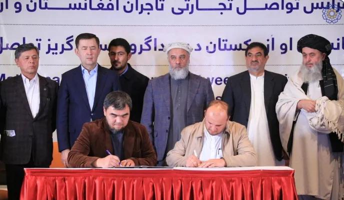 وزارت صنعت و تجارت طالبان گفته است که تاجران افغانستان و اوزبیکستان در کنفرانس تواصل تجارتی میان دو کشور، ۲۵ تفاهمنامه به ارزش بیش از ۳۰۰ میلیون دالر امضا کردهاند. این تفاهمنامهها شامل سکتورهای ساختمان، مواد خوراکی، زراعت، مبل و فرنیچر، پوشاک و ادویه میشود. همچنین توافق شد که تجارت ترجیحی برای هشت قلم کالا از جانب افغانستان و شش قلم کالا از جانب اوزبیکستان اجرایی شود. نورالدین عزیزی، وزیر صنعت و تجارت طالبان، گفته است که روابط تجاری میان دو کشور در سالهای اخیر رشد قابل توجهی داشته و ظرفیت گسترش بیشتر را دارد. ارکینجون توردیموف، والی سیر دریا در اوزبیکستان، روابط تجاری را مثبت خوانده و از تاجران خواسته است که فرصتها و پیشنهادهای خود را برای توسعه بیشتر این روابط مطرح کنند.
