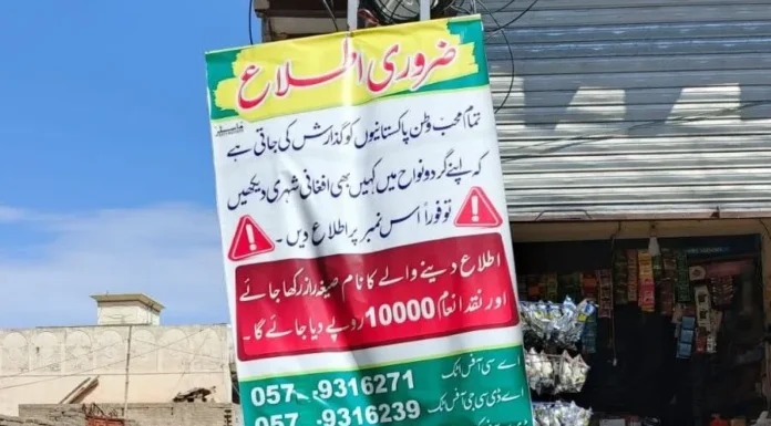 گزارشها نشان میدهد که در برخی شهرهای پاکستان اطلاعیههایی پخش شده که در آن از مردم خواسته شده است محل اقامت مهاجران افغانستان را به پولیس اطلاع دهند. بر اساس این اطلاعیهها که روز یکشنبه (۲۴ حوت) منتشر شده، برای ارائهٔ اطلاعات دربارهٔ محل حضور مهاجران افغان جایزه نیز در نظر گرفته شده است. گفته میشود این اقدام از سوی پولیس پاکستان انجام شده است. این در حالی است که همزمان با افزایش تنشها و درگیریهای نظامی میان طالبان و پاکستان، روند بازداشت و اخراج مهاجران افغان در این کشور نیز تشدید شده است. پس از بازگشت طالبان به قدرت در سال ۲۰۲۱، هزاران شهروند افغانستان برای فرار از مشکلات امنیتی و اقتصادی به پاکستان پناه بردهاند.