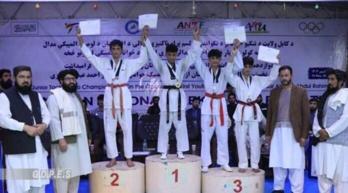 د طالبانو تر واک لاندې د ملي اولمپیک، فزیکي زده کړې او سپورت کمېټې اعلان کړی،چې د ځوانانو د تکواندو د انتخاب سیالۍ دوولسم پړاو په کابل کې د ۲۰ سپورتي کلبونو د ۱۲۰ لوبغاړو په ګډون سره پیل شوی او دوه ورځې به دوام وکړي.