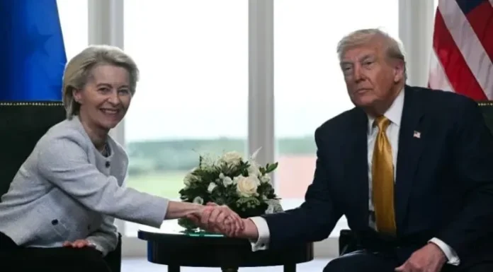 د امریکا د متحدو ایالتونو ولسمشر، ډونالد ټرمپ، له اروپايي ټولنې سره د یوې نوې هوکړې د ترلاسه کولو خبر ورکړی، چې له مخې به یې، امریکا د اروپا پر وارداتو ۱۵سلنه ګمرکي تعرفه ولګوي. ټرمپ دا هوکړه «له ټولو لویه هوکړه» بللې ده. ټرمپ دا څرګندونې په سکاتلند کې له د اروپايي کمېسیون له مشرې، اورزولا فوندېرلاین، سره تر لیدو وروسته وکړې. نوموړي زیاته کړې، چې د دې موافقې یوه برخه دا ده، چې اروپا به د امریکا پوځي تجهیزات رانيسي. همداراز ټرمپ ویلي چې اروپایي ټولنه به د دې موافقې له مخې له امریکا څخه د ۷۵۰ میلیاردو ډالرو په ارزښت انرژي واخلي. د امریکا ولسمشر همدا راز اعلان کړی، چې امریکا به په اروپا کې د ۶۰۰ میلیاردو ډالرو پانګونه وکړي. د اروپایي کمېسیون مشرې هم دا هوکړه «ښه» یاده کړې ده.