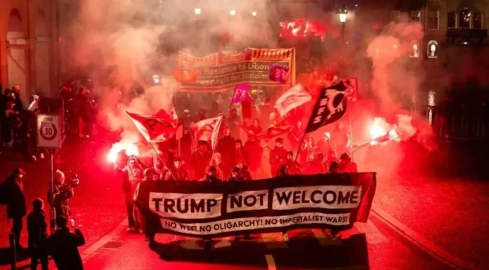 په سویس کې سلګونو لاریونوالو د امریکا بیرغ ته اور اچولی او د داووس په نړیوال اقتصادي فورم غونډه کې یې د امریکا د ولسمشر ډونالډ ټرمپ له ګډون سره مخالفت ښودلی دی. د ټاس خبري اژانس د خبر له مخې، په دغو لاریونو کې شاوخوا ۲زرو تنو برخه اخیستې وه او له وښو څخه د جوړو شويو لوګي لرونکو بمونو په وسیله یې اورونه اچول. لاریونوالو په یو غږ: « ټرمپ ناروغ دی» شعار ورکاوه او او ترڅنګ یې دا هم ویل چې : «در وه یې تړئ». او لاریونوالو د امریکا بیرغ ته اور اچولی دی. د دغه لاریون چمتو کوونکې ډله، د کیڼ اړخو ټولنیزو حرکتونو سازمان و او پر وینا یې د ټرمپ په واکمنۍ کې د امریکا سیاست د وسلهوال ځواک د ترهګرۍ او د کمزورو هېوادونو د مجبورولو په لوري روان دی. په راپور کې راغلي چې د داوس په اقتصادي نړیوال فورم کې غونډه کې له دغو لاریونو سره مل د ټرمپ دا سفر ښيي، چې امریکا په بشپړه توګه د سیاسي ناورین پر لور ګامونه اخلي. د داوس نړیوال اقتصادي فورم د سویس یوه غیر دولتي اداره ده، چې هر کال د سوداګرۍ، سیاست او بېلابېلو برخو د متخصصینو سره غونډې ترسره کوي. سږنۍ دا فورم د جنورۍ له ۱۹ مې تر ۲۳ مې پورې په دغه هېواد کې جوړ شوی دی.