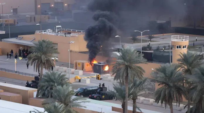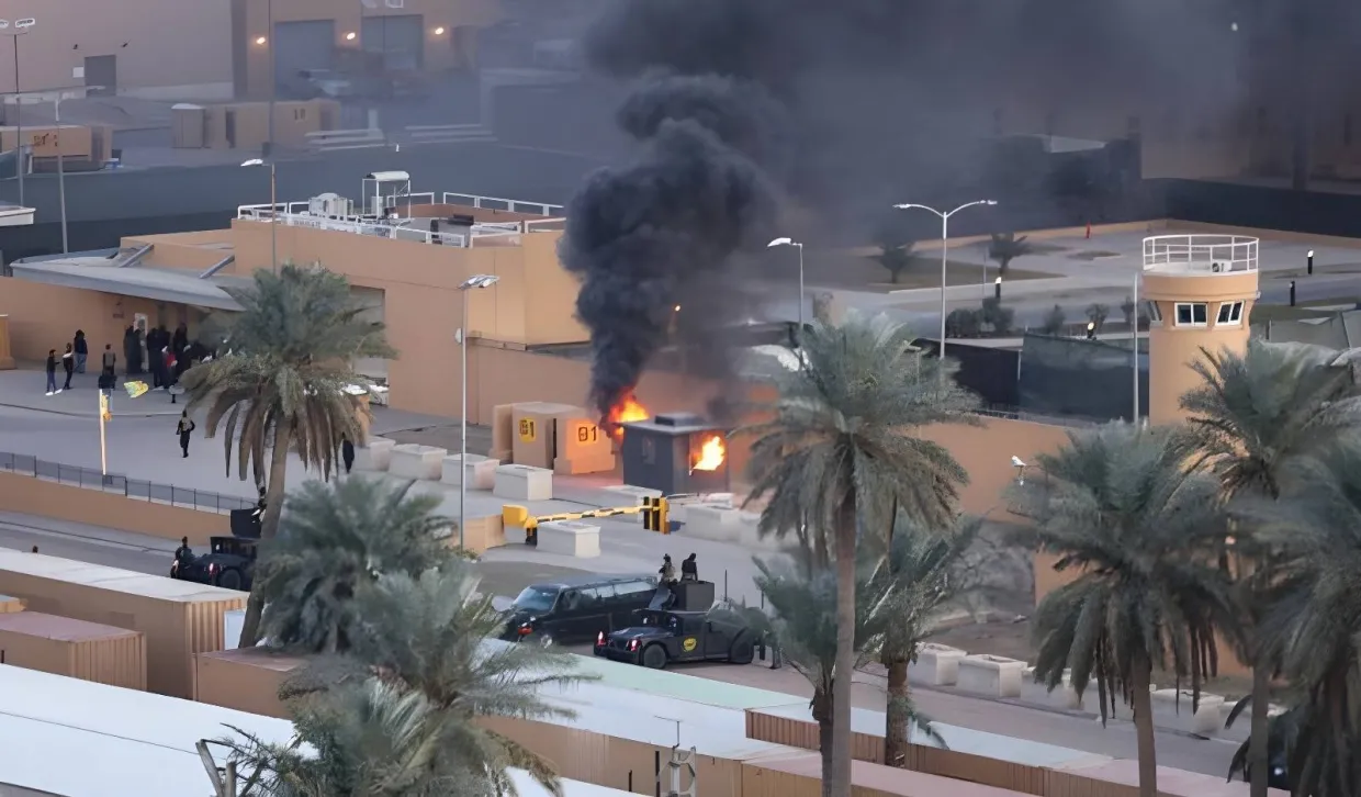 د عراق حکومتي چارواکو خبر ورکړی، چې بغداد کې د امریکا سفارت باندې توغندیز برید شوی دی. ځايي چارواکو ويلي تراوسه دا روښانه نه ده چې په دې برید کې د مرګژوبلې او یا هم د زیان اندازه څومره ده، خو د پېښې د جزئیاتو د معلومولو لپاره څېړنې روانې دي. راپورونه ښيي چې د ایران پلوي وسلهوالو ډلو په عراق کې مخکې هم ژمنه کړې وه، چې د امریکا پر تاسیساتو، په ځانګړي ډول بغداد کې د یاد هېواد پر سفارت به بریدونه وکړي. د دغو ډلو په وینا، د دې بریدونو هدف د ایران د ستر مذهبي مشر ایتالله علي خامنهيي د وژلکېدو غچ اخیستل دي. د دوی په وینا، نوموړی د امریکا او اسراییلو د هوايي برید له امله د روان کړکېچ په پیل کې وژل شوی و. همدارنګه ویل کېږي، چې یادو وسلهوالو ډلو پرون یو بیان خپور کړی و، چې پهکې یې اعلان کړی، هر هغه څوک چې په عراق کې د امریکايي دیپلوماتیکو کارکوونکو په اړه معلومات ورکړي، تر ۱۰۰زره ډالرو پورې انعام به ترلاسه کړي. په بیان کې دا هم راغلي، چې دوی په عراق کې د امریکا پر ګټو، پوځي اډو او تاسیساتو بریدونه کړي او ادعا کوي چې دغه فشارونو امریکايي کارکوونکي دې ته اړ کړي، چې په ملکي کورونو کې پناه واخلي.